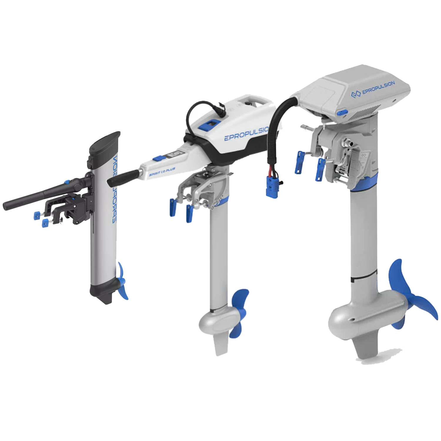 Innovative, clean, and quiet electric outboards with an integrated battery system (Available with the Spirit and E-lite series only), featuring the entire line from E-Propulsion! These premium lightweight, and portable electric outboards are designed for sailboats, fishing boats, yachts and kayaks, featuring sizes available for all your needs. No more pull-starting or warming up the engine. Just press the start button and you're ready to go! Their Spirit 1.0 EVO, their soon to be released, Spirit 2.0, all of the Navy series, and X-Series outboards can also function as efficient hydrogenators while underway!